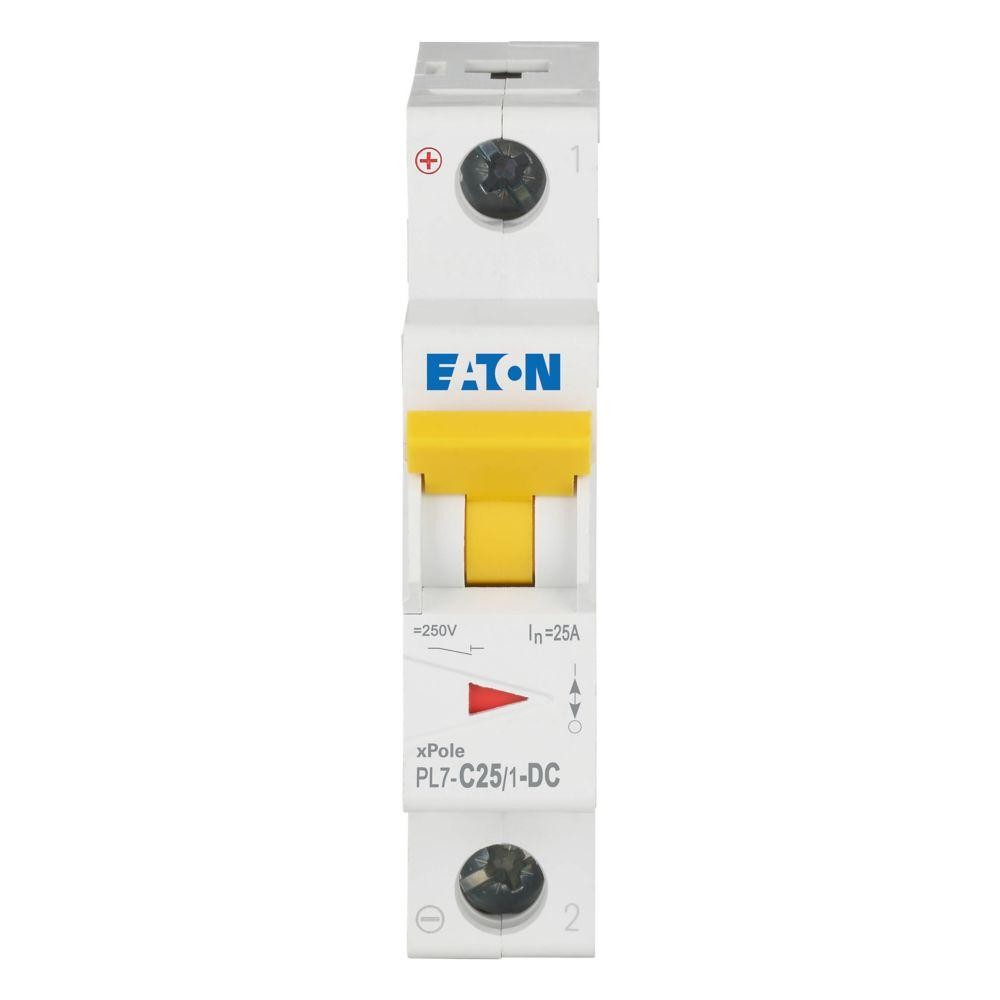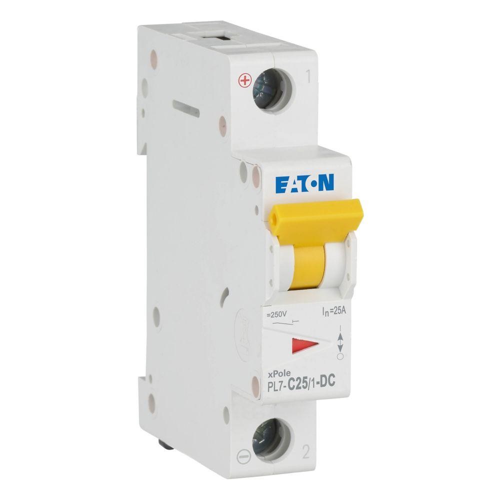 Автоматичний вимикач 1п 25A PL7-C25/1-DC 10kA EATON - це пристрій, призначений для захисту електричних кіл постійного струму від перевантаження та короткого замикання. Він використовується в ланцюгах постійного струму з напругою до 250 В на полюс.