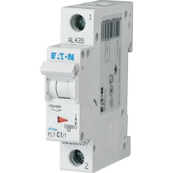 Автоматичний вимикач 1п 1A PL7-C1/1 10kA EATON - це пристрій, призначений для захисту електричних кіл від перевантаження та короткого замикання. Він є важливим елементом електричної системи, що забезпечує безпеку та надійність її роботи.