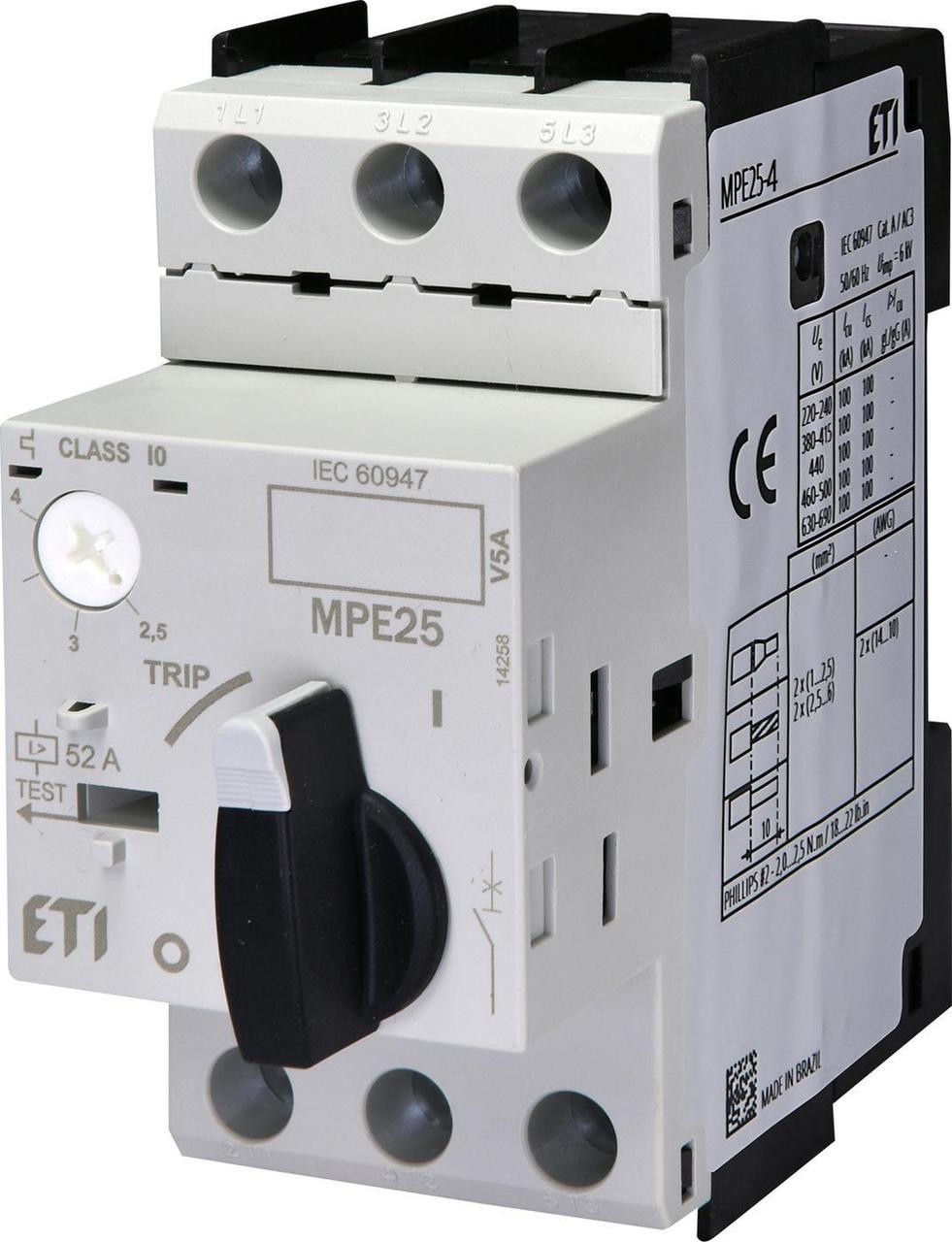 Автоматичний вимикач захисту двигуна MPE25-4,0 від компанії ETI призначений для комплексного захисту трифазних електродвигунів від перевантажень, коротких замикань та обриву фази.