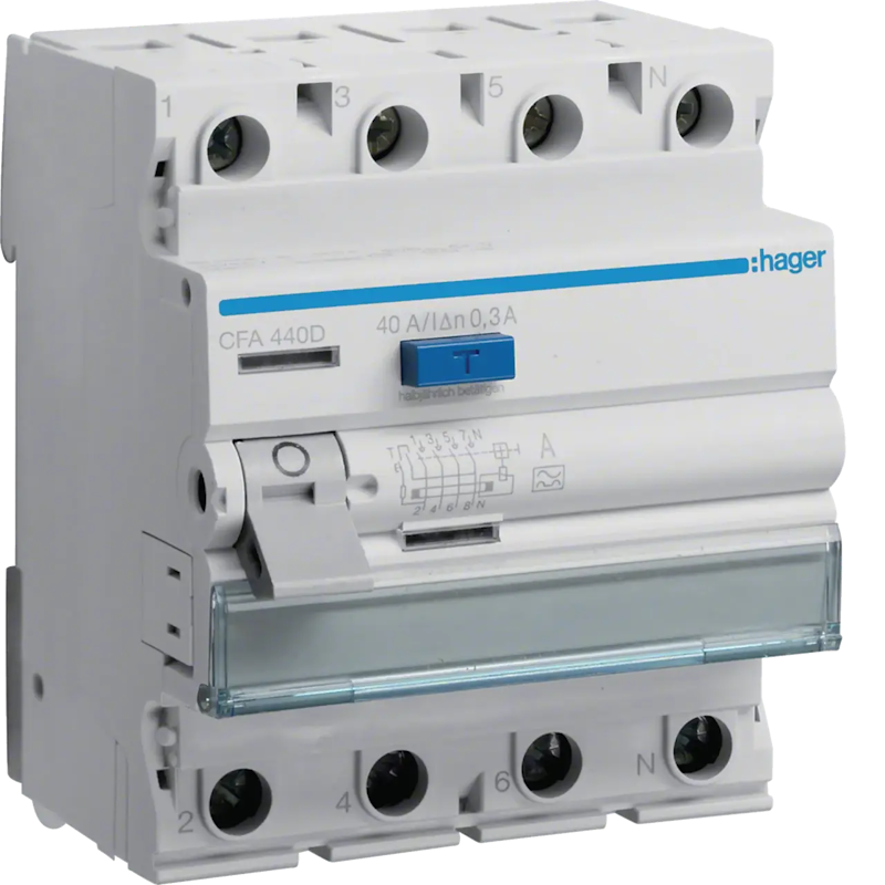 Диференціальне реле HAGER 4п 40A 300 mA A 4м CFA463D