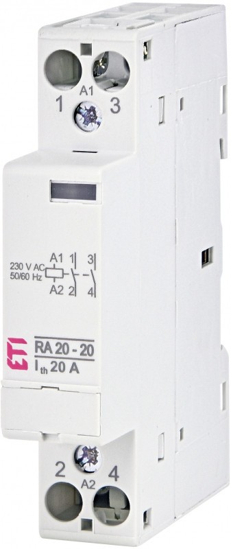 Модульний контактор ETI RA 20-20 230V AC — це електротехнічний пристрій, призначений для дистанційного керування електричними ланцюгами змінного струму.