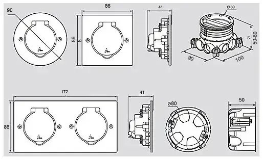 Розетковий блок може встановлюватись як у підлогу, так і монтуватися в стільницю. Блок виконаний з нержавіючої сталі та при установці в підлогу допускаються зовнішні навантаження на кришку блоку силою до 0,8Nm. Блок адаптований під настановні вироби як звичайних розеток, і комп'ютерних, телевізійних, телефонних та інших розеток стандарту 45х45mm.