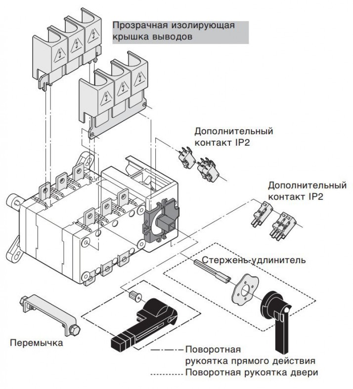Принцип роботи: перемикання під навантаженням 2 живильних ліній низької напруги з безпечним розривом