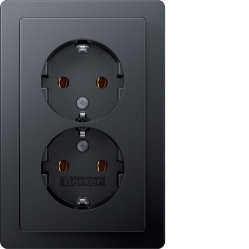 Розетка подвійна HAGER-BERKER з заземлюючим контактом 16А / 250В антрацит Q.1