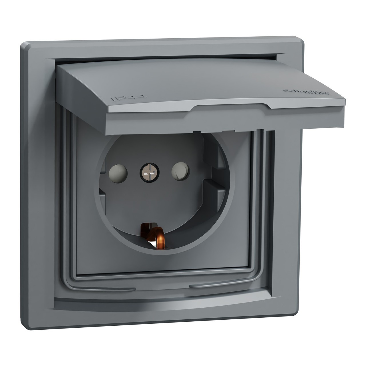 Розетка SCHNEIDER ASFORA EPH3100362 з з/к з кришкою і з захис. шторкамі сталь