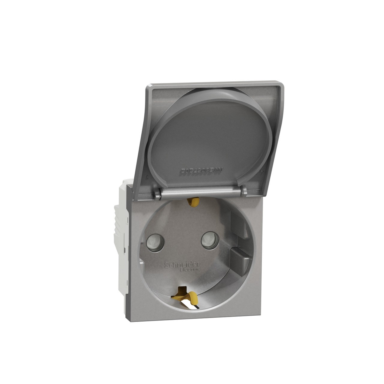 Розетка SCHNEIDER Unica NEW з/к зі шторками і кришкою 16А гвинт.заж. алюміній