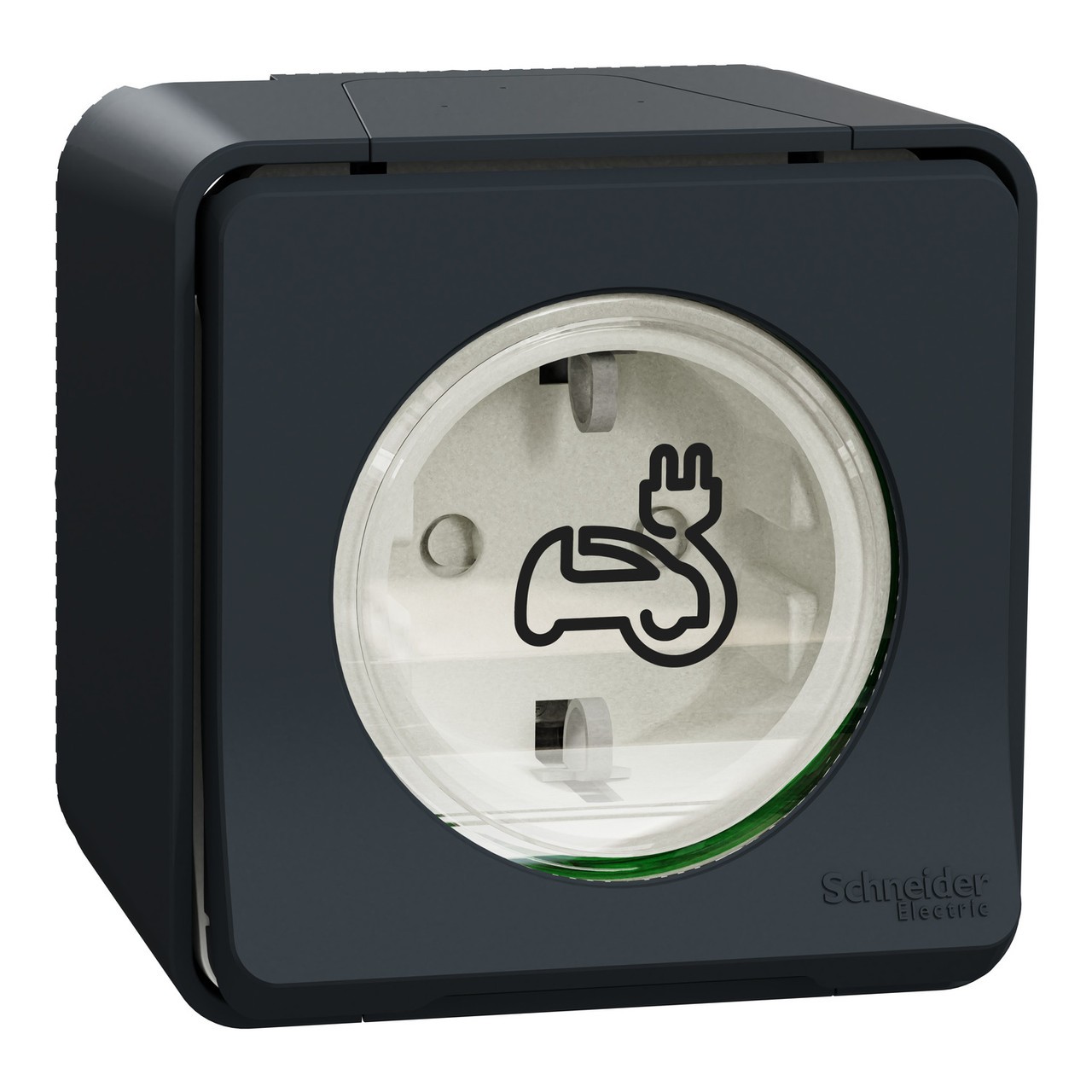 Розетка SCHNEIDER з з/к16A шторками та кришкою зовнішнього монтажу "електромобіль" IP55 Mureva Styl чорний