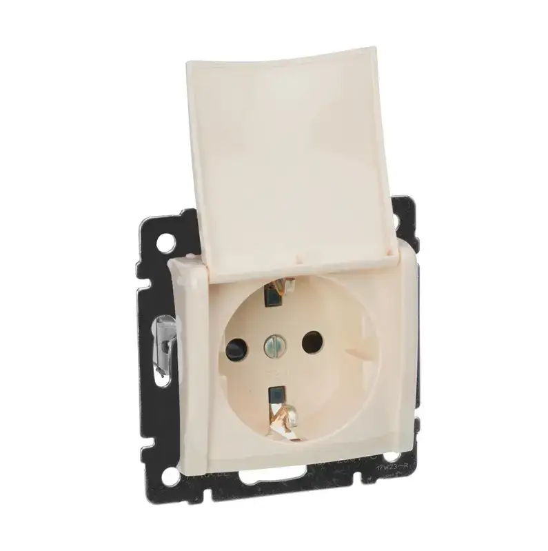 Розетка з заземленням LEGRAND Suno 16А 250В з кришкою слонова кістка