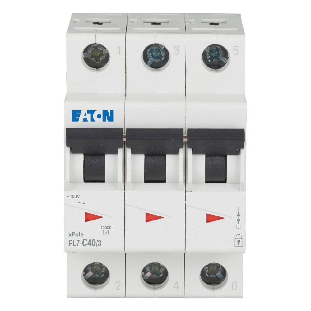 Автоматичний вимикач 3п 40A PL7-C40/3 10kA EATON - це пристрій, призначений для захисту трифазних електричних кіл від перевантаження та короткого замикання. Він є важливим елементом електричної системи, що забезпечує безпеку та надійність її роботи.