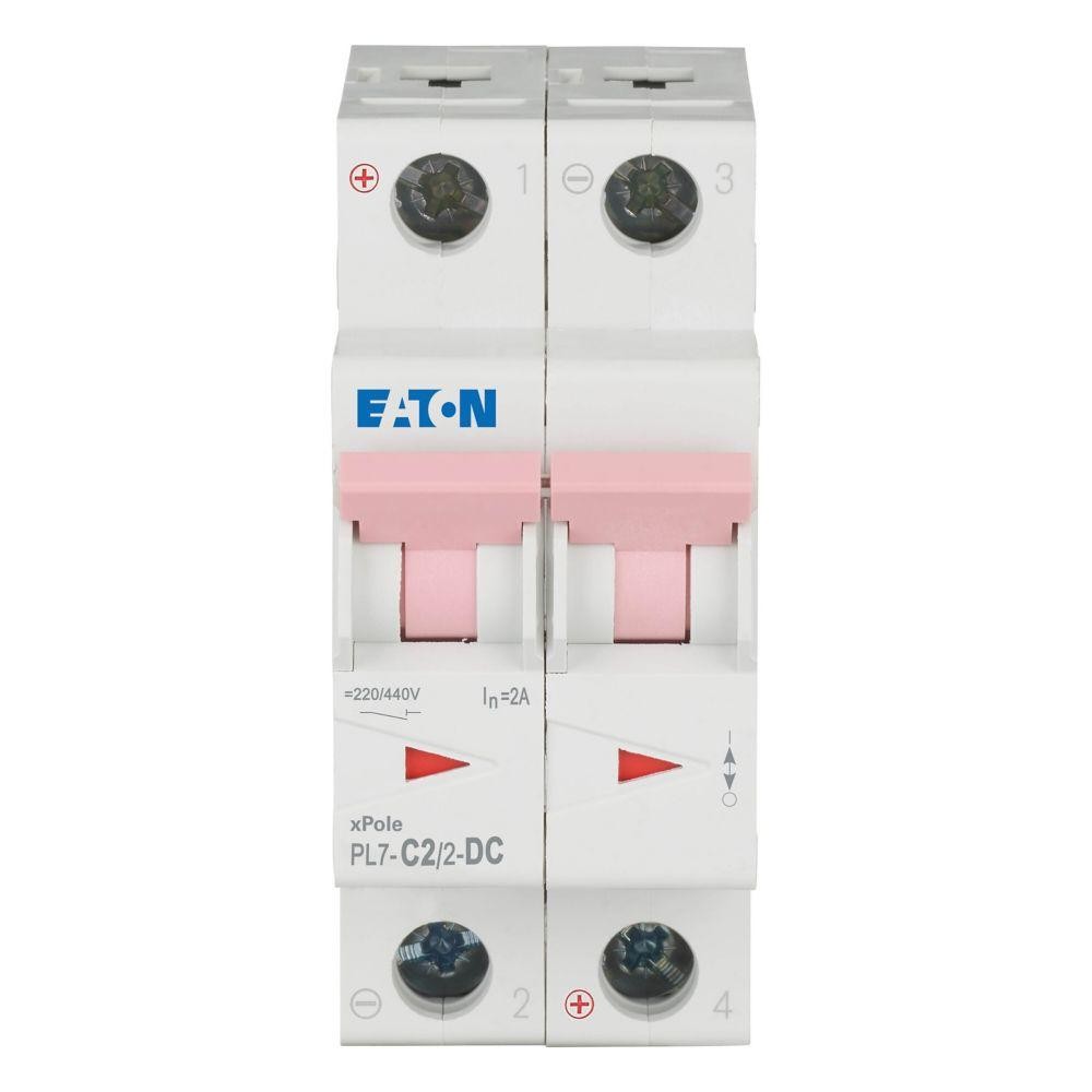 Автоматичний вимикач 2п 2A PL7-C2/2-DC 10kA EATON - це пристрій, призначений для захисту електричних кіл постійного струму від перевантаження та короткого замикання. Він використовується в ланцюгах постійного струму з напругою до 500 В (250 В на полюс).