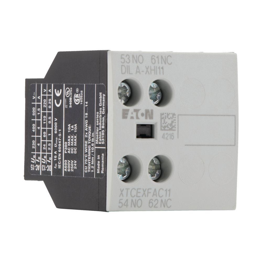 Блок додаткових контактів DILA-XHI11 від EATON (Moeller) - це пристрій, призначений для розширення функціональності контакторів DILM шляхом додавання додаткових електричних контактів. Він встановлюється безпосередньо на контактор та дозволяє використовувати його в більш складних схемах керування та автоматизації.