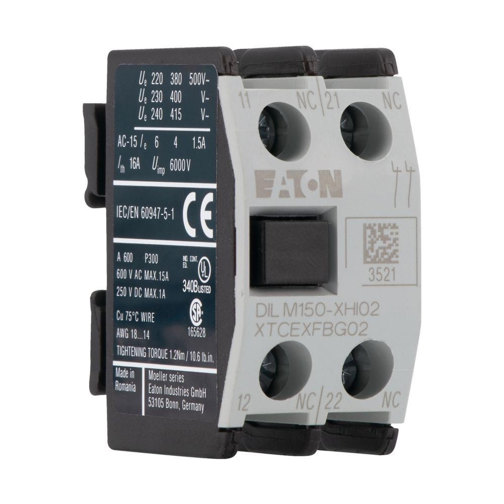 Блок додаткових контактів DILM150-XHI02 EATON - це пристрій, який використовується для розширення функціональності контакторів EATON серії DILM. Він встановлюється на контактор та додає йому додаткові контакти, які можуть використовуватися для різних цілей, наприклад, для сигналізації, блокування або управління іншими пристроями в електричному колі.