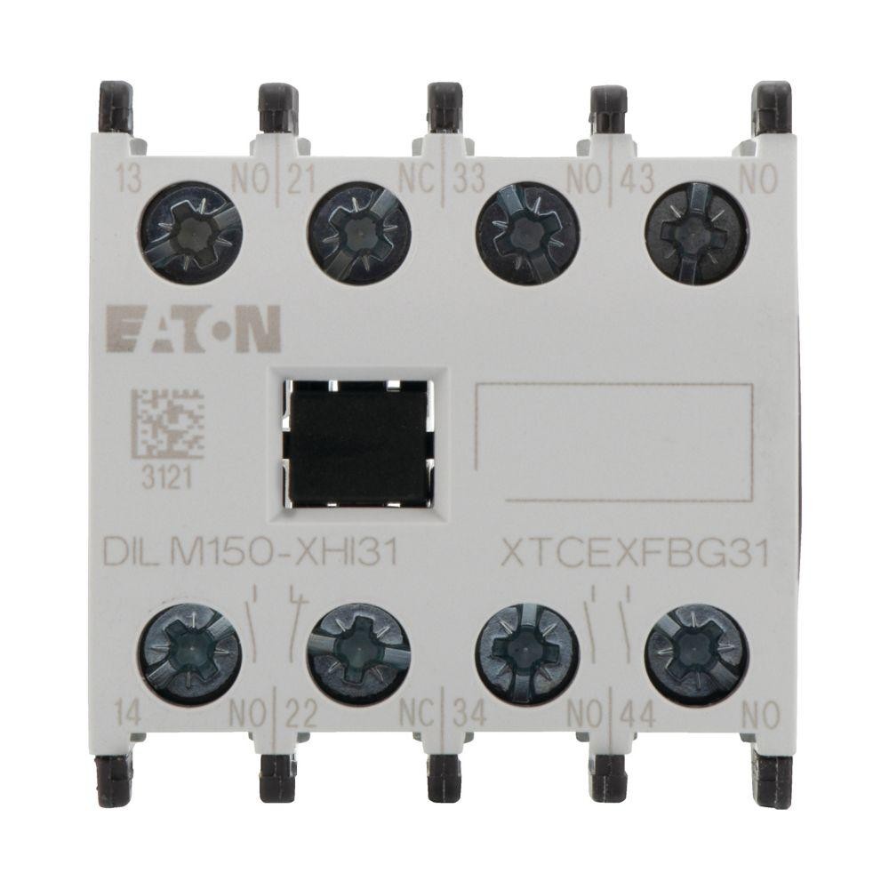 Блок додаткових контактів DILM150-XHI31 EATON призначений для використання з контакторами EATON серії DILM. Він має модульну конструкцію та легко встановлюється на контактор без використання спеціальних інструментів. Блок DILM150-XHI31 містить три нормально відкритих (NO) та один нормально закритий (NC) контакти.