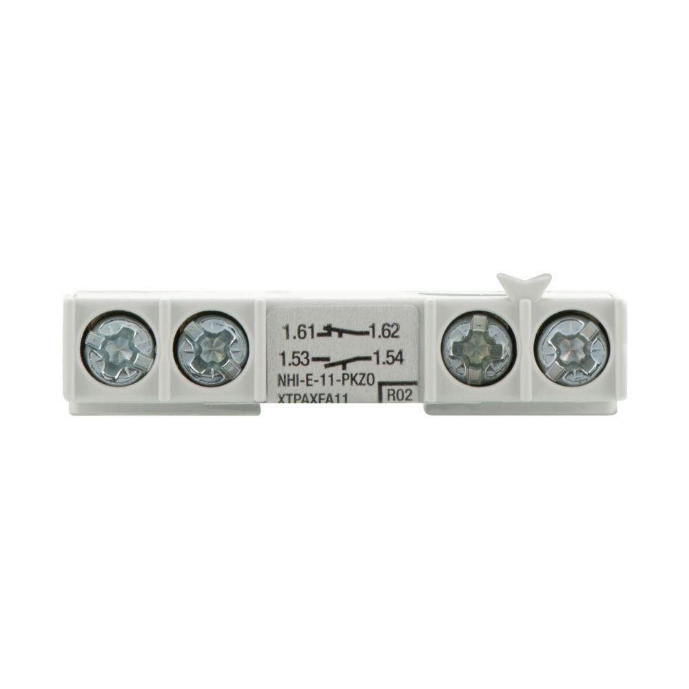- Розширення кількості контактів: Блок NHI-E-11-PKZ0 додає два додаткових контакти до автоматичного вимикача, що дозволяє використовувати його для керування більшою кількістю електричних кіл.