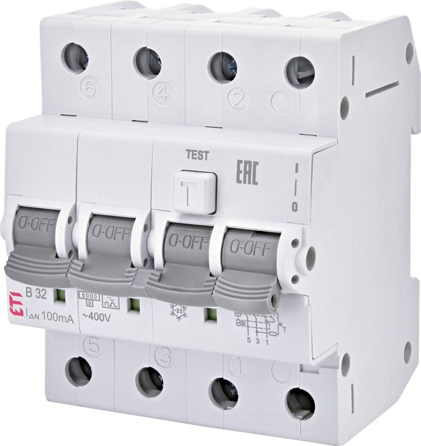 Диференційний автоматичний вимикач ETI KZS-4M 3p+N C 32/0,03 тип AC (6kA) — це багатофункціональний захисний апарат, призначений для використання в трифазних електричних мережах.