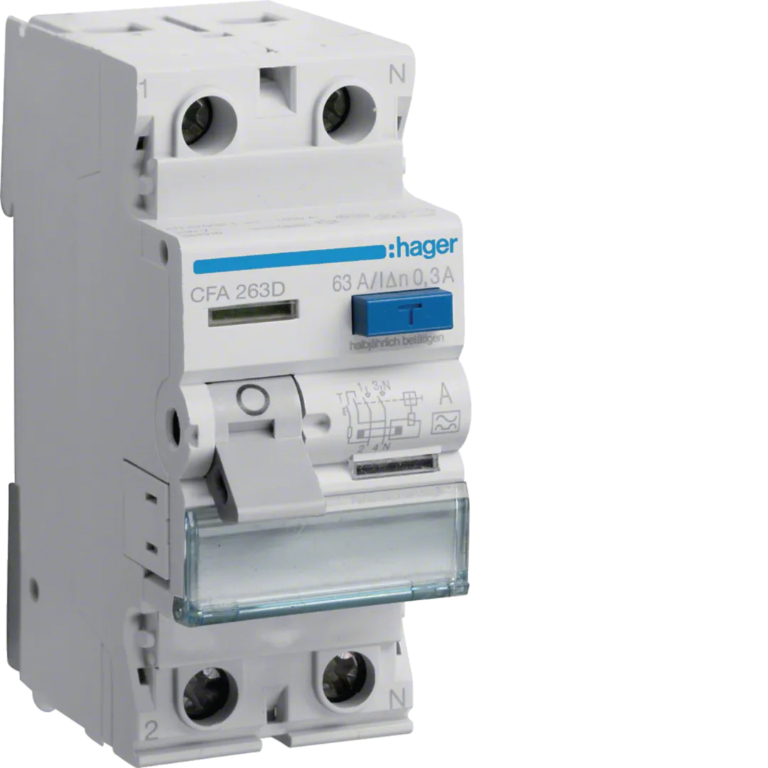 Дифференциальное реле HAGER 2п 63A 300mA A 2м CFA263D