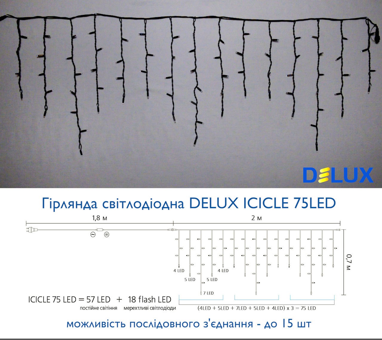 Гирлянда внешняя DELUX ICICLE 75LED 2x0.7m 18 flash синий/черный IP44 EN