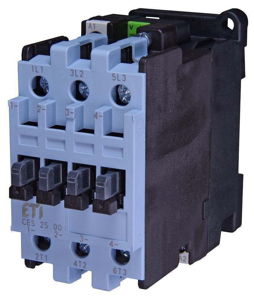 Контактор CES 25.00 від ETI – це електромагнітний апарат, призначений для частих комутацій (включення та відключення) силових електричних ланцюгів змінного струму, особливо ланцюгів електродвигунів та інших індуктивних навантажень.