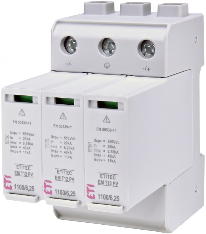 Обмежувач перенапруги ETITEC EM T12 PV 1100/6,25 Y виробництва компанії ETI (Словенія) – це пристрій, спеціально розроблений для ефективного захисту фотоелектричних (PV) систем від руйнівних перенапруг, що можуть виникнути внаслідок прямих та непрямих ударів блискавки, а також комутаційних процесів.