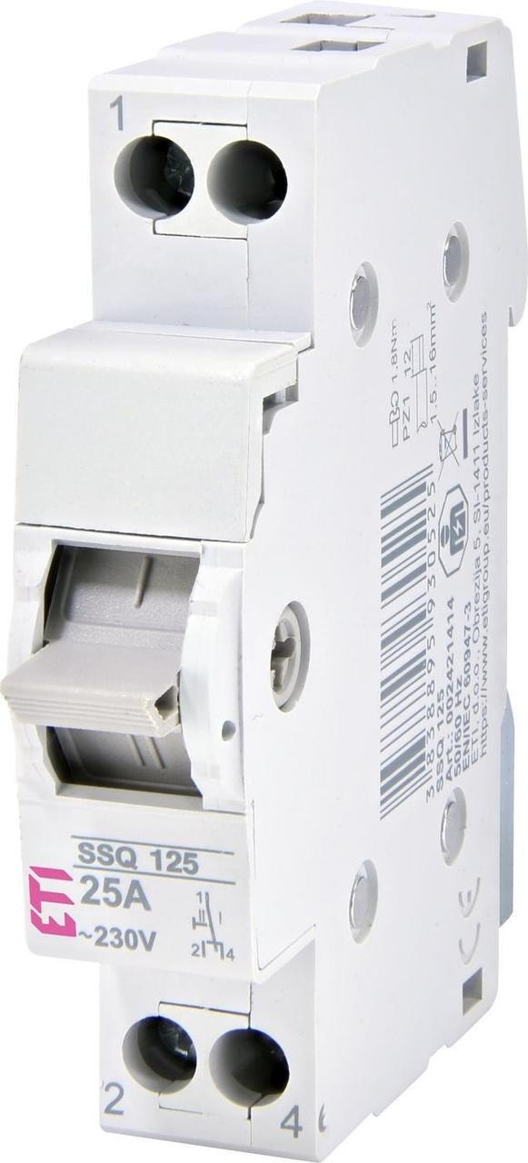 Перемикач навантаження SSQ 125 "1-0-2", 1p 25A ETI — це однополюсний модульний перемикач, призначений для ручного перемикання електричних ланцюгів. Характеристики продукції
