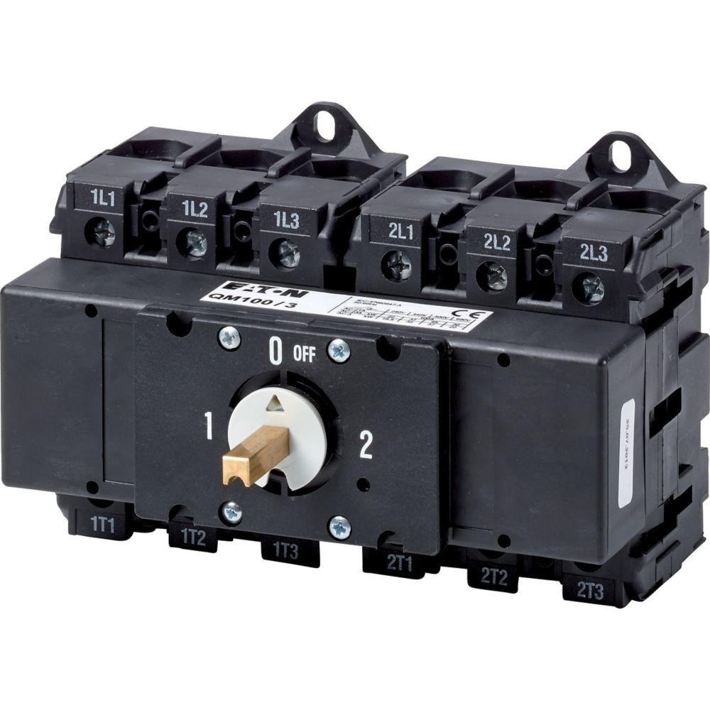 Перемикач QM100/3 EATON - це ручний перемикач, призначений для комутації електричних кіл під навантаженням. Він використовується в промислових, комерційних та житлових електроустановках для перемикання між різними джерелами живлення або для керування різними групами навантаження.