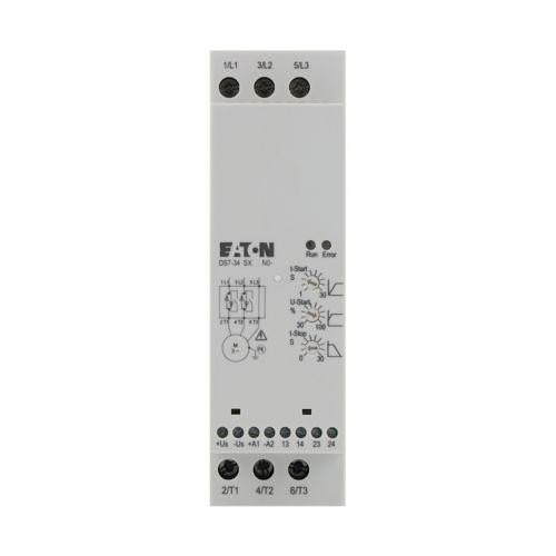 Eaton DS7-342SX032N0-N – це сучасний та надійний пристрій плавного пуску (soft starter) з популярної серії DS7 компанії Eaton, розроблений для забезпечення контрольованого та щадного запуску і зупинки трифазних асинхронних електродвигунів потужністю до 15 кВт (при напрузі 400 В, 50 Гц) та номінальним робочим струмом до 32 А.