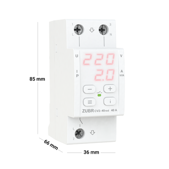 ZUBR CV2 red защищает оборудование от высокого и низкого напряжения, обрыва нуля, а также ограничивает потребление тока или мощности. При отклонении напряжения ZUBR выключит нагрузку, а при превышении тока или мощности нагрузка отключится через заданное время задержки.  Время срабатывания – от 10 миллисекунд.