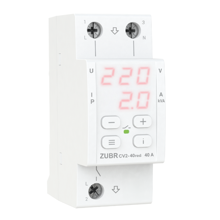 Реле напряжения с контролем тока ZUBR CV2-40 red