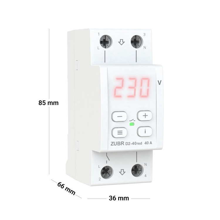 Реле контролирует показания сетевого напряжения, и когда порог заданных пользователем характеристик превышается или ниже установленного значения – отключает технику от источника питания. Время срабатывания – от 10 миллисекунд.