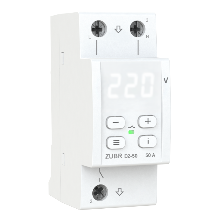 Реле контролирует показания сетевого напряжения, и когда порог заданных пользователем характеристик превышается или ниже установленного значения – отключает технику от источника питания. Время срабатывания – от 10 миллисекунд.