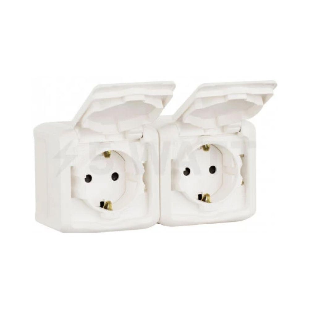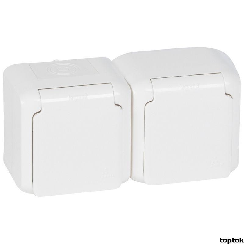 Розетка двойная с з/к LEGRAND Forix 16А с крышкой и шторками IP44 накладного монтажа белая