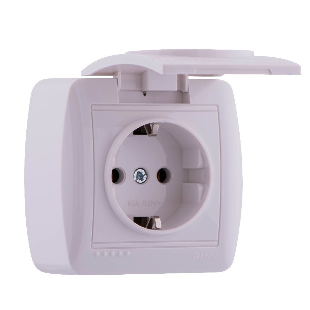 Розетка наружная LEZARD Demet 711-0200-123 с заземляющим контактом и крышкой белая