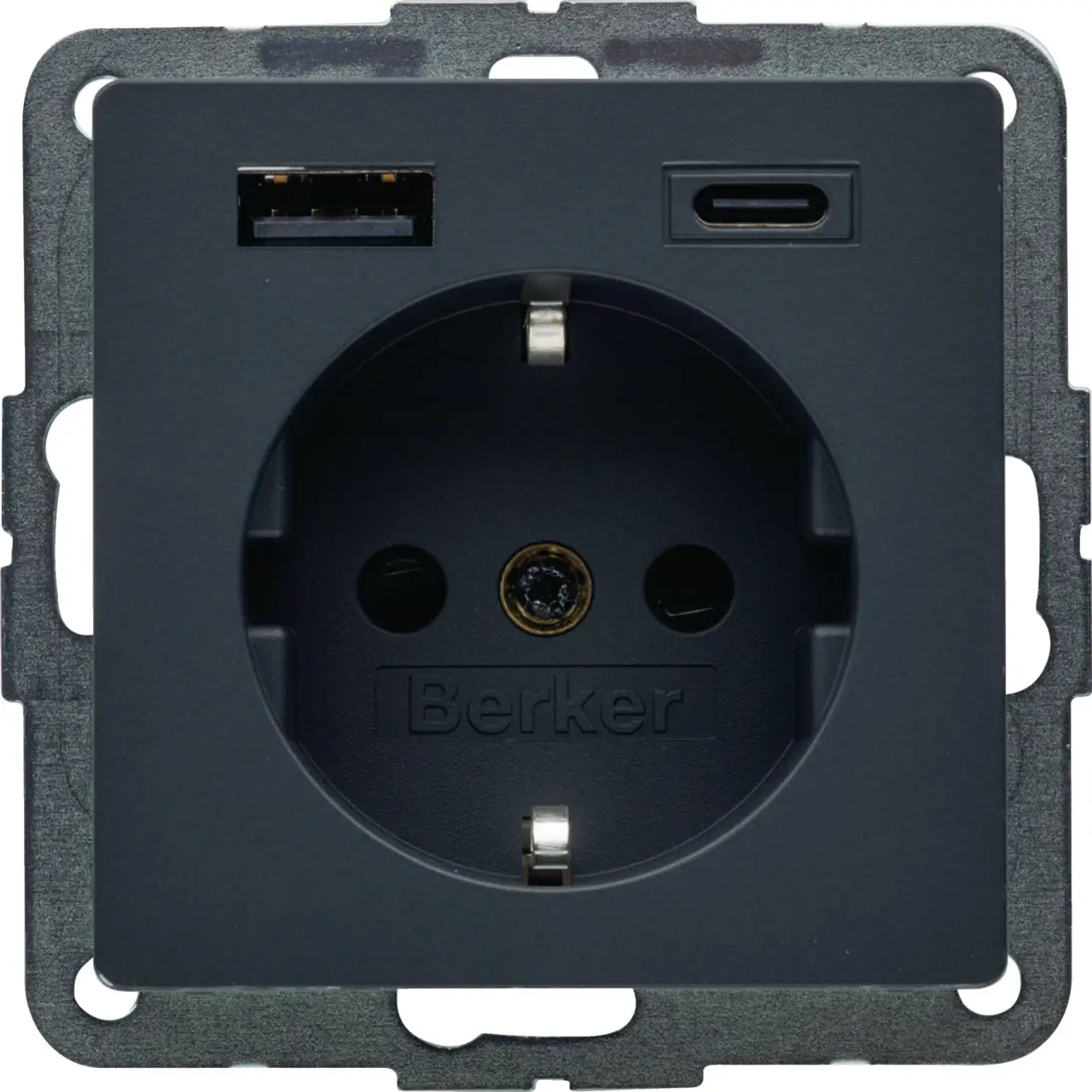 Розетка с заземляющим контактом HAGER-BERKER 2хUSB A-С /20Вт антрацит Q.х