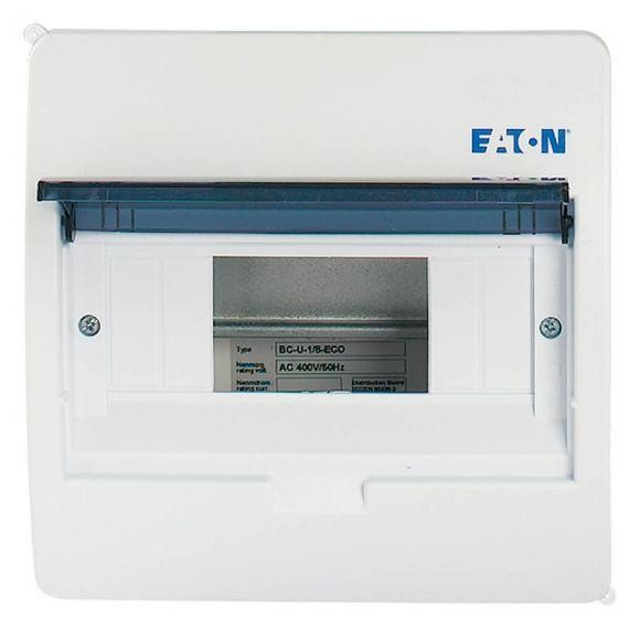 Щит вбудований на 8 модулів BC-U-1/8-ECO IP40 EATON – це компактний розподільний щит, призначений для прихованого монтажу в стіну. Він використовується для встановлення невеликої кількості модульних пристроїв захисту та управління в електричних мережах житлових, комерційних та промислових об'єктів.