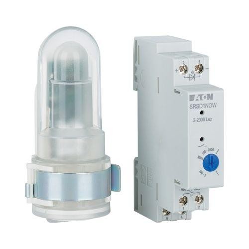Датчик SRSD1NOW від EATON - це фотоелектричний датчик, який використовується для автоматичного керування освітленням або іншими електричними приладами залежно від рівня освітленості. Він встановлюється на DIN-рейку та має виносний датчик освітленості.