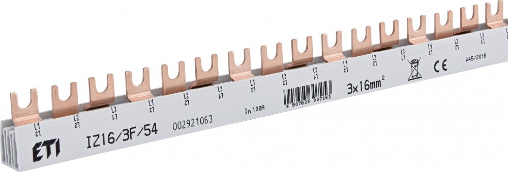 Шина живлення ETI IZ 16/3F/54 є високоякісним компонентом для ефективного та надійного розподілу електроенергії в електричних щитах та розподільчих пристроях.