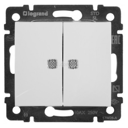 Вимикач двоклавішний з підсвічуванням (сх 5) LEGRAND Valena Classic білий